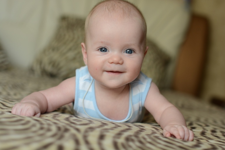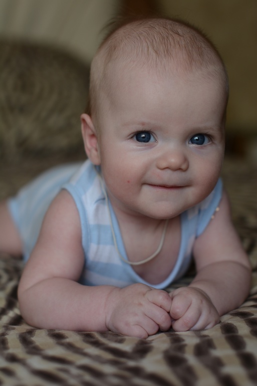 Психует на животе, так как хочет ползти, но не получается((( любит купаться, правда взял привычку какать в ванну)))) кушать стал чаще ( наверное период подстраивания лактации под требование малыша), спим днём по настроению))) даже и новостей-то особых нет))) теперь будем учиться ползать))))