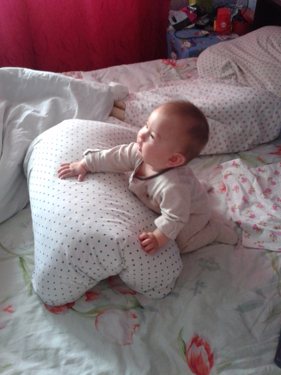 Садится сама из положения полулежа, опираясь на локти и так может просидеть минут 5, потом валится. Если вперед, с легкостью вытаскивает из-под себя ноги. Не ползает нифига, встает на четвереньки, качается и все, дальше дело не идет. Переворачивается неохотно, только когда ну очень надо, а так будет лежать и ныть, если устала. Когда валяемся на диване, то опираясь на меня может сесть на колени и потом даже вытянуть ножки, как бы встать, но не надолго. Понимает "открывай ротик", когда кормлю ее, "пошли" или "пойдем", тянет ручки. Когда ест, так прикольно мычит, надеюсь, от удовольствия. Тянет ручки, когда говоришь, иди ко мне))) Вчера пыталась поцеловать меня))))ну мне так хочется думать))) схватила за голову и ртом прижалась к щеке)))) очень трогательно....хотя может пыталась укусить. Вчера лежит на полу на животе, я рядом сижу. Увидела папины тапки, хвать и в рот их...отняла со словами "нельзя, это кака"))), отбросила их подальше. Ладно) разворачивается, видит мамины тапки, НО достать никак....думала-думала, ухватилась за ножку стола, подтянулась и вуаля! тапки в руках. А вообще, тапки, пульты, телефоны и ложки наше все) любимая игрушка, это 6 мерных ложек на кольце, стащили у бабушки с дачи.