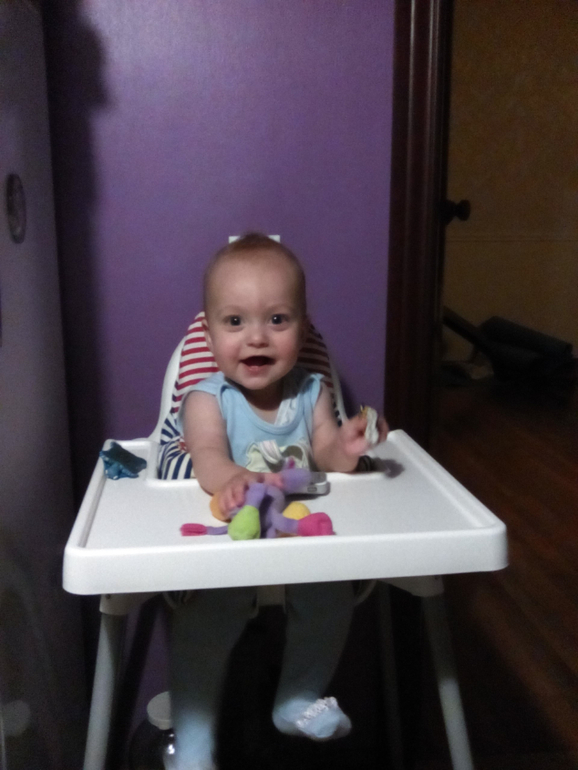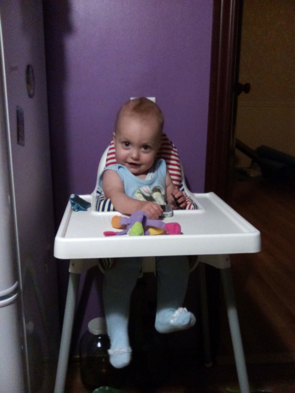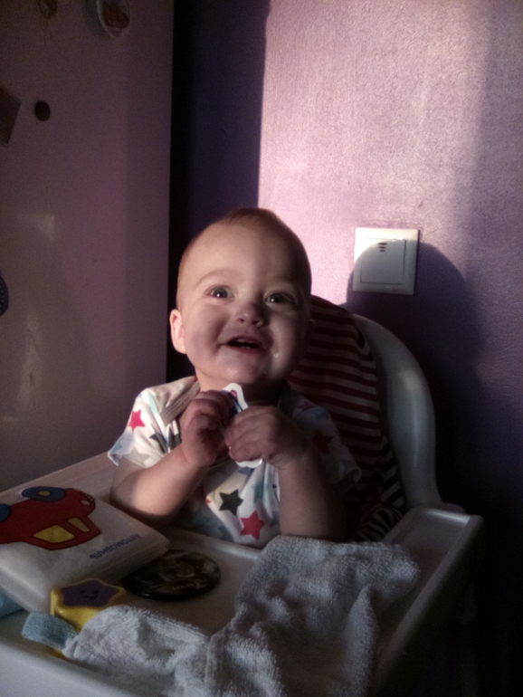 Про еду: более активно стали вводить прикорм, да и ребенок стал его, наконец, есть. Ест с удовольствием гречневую и кукурузную каши. Мясное пюре попробовали - не нравится совсем, ни домашнее, ни из банки. Не очень нравится груша. Овощные пюре ест хорошо. Вечером, ночью и в 6 утра у нас ГВ, в 10:00 - кукурузная каша с фруктовым пюре, в 14:00 - гречневая с овощным. По глупости купила кукурузную кашу с фруктами, она оказалась на молоке(смеси) - как итог на моське и руках, куда попала каша появилась крапивница…не хочет пить воду, чай, компот - ничего…