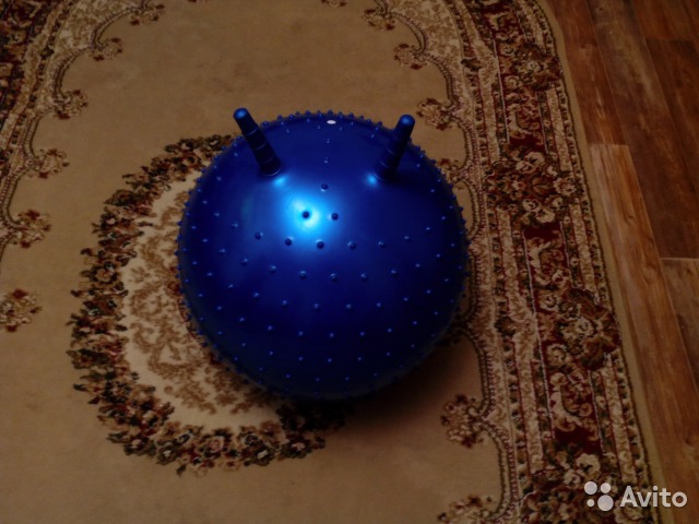 65 очень удобный размер. Больше и не надо. Без рифлености это точно. Насчет ручек кому как удобно. Нам не мешают. Да и старшая на нем скачет, держась за ручки. Еще должна быть какая то антивзрывочная система. Частенько скачу на нем сама при укачивании. Очень быстро вырубается. А еще на нашем мордочка нарисована, доча как только его видит улыбка до ушей.