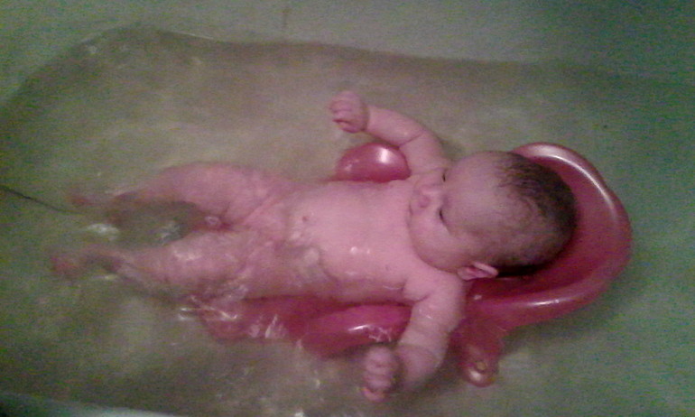 Бассейн и водные процедурыСегодня мы с доченькой купались, я думала с ума сойду. Варюша такое вытворяла в ванне, а ведь ей всего 3 месяца. Как обычно набрали в ванну воду, одели круг и опустились. Ребенок вел себя очень активно запрокидывала голову так что она уходила под воду, ноги над водой, поворачивалась вокруг себя. Решила набрать побольше воды, но и это не помогло. Встаёт на ноги отталкивается, прыгает как лягушка я только успевала ловить что бы не нахлебалась воды. Потом слила воду ну все сейчас думаю точно все будет отлично, и опять ни как со спины переворачивается на живот и коленями по дну, а если не перевернулась так отталкивалась и вода заливалась в круг, а следовательно в рот, нос и уши. Руки так напряжены были все время сложены на груди под кругом. Переложила её на горку, последнее из нашего арсенала в купании так она и тут вела себя так же била ногами о воду, и по дну ванны пятками я думаю было больно но ей это ни как не мешало, я же стою и пытаюсь уговорить её так не делать, а у самой руки трясется от страха, переворачивается на правый бок падая вместе с горкой в воду, через 15 минут такого аттракциона моё сердце не выдержало, мы завернулись в полотенца и скорее в спальню. Прошёл уже час, а меня ещё трясет и я пытаюсь понять ЧТО ЖЕ ЭТО БЫЛО ТАКОЕ!!!! В тексте невозможно передать и описать все то что я видела, как она это делала, теперь я боюсь за нас обеих