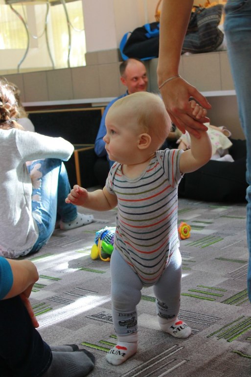 Физическое развитие: ползает со скоростью света, встает, сам стоит долго, ходит уверенно за одну ручку и так легонько за нее держится, лишь бы чувствовать опору... Ощущение,что стоит отпустить и...пойдет... Уже скоро затопает мой маленький...