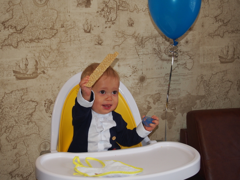 Год отметили замечательно, было много гостей, именинника задарили подарками, улыбался в свои 8 зубов))))