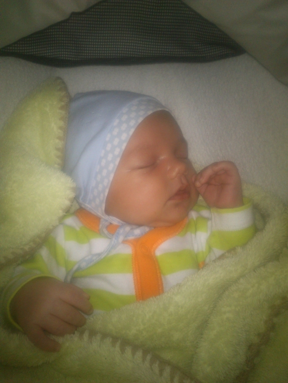 Сынулик в основном спит, и чаще всего на руках,как только кладу-открывает глаза и сон исчезает куда-то..хитренький!!А так спит еще в люльке(авто кресло).Срыгивает!!(с Севой не было такого),жадина еще тот,насосет полный рот.не успевает глотать-давится!Сисечник еще тот!!Животик нас не много беспокоит,ну ничего,пройдет,самое главное-что здоровенький!!Практически уже держит САМ головку-сильный мужчинка!Он ее еще в роддоме начал отрывать,когда столбиком держали его!Выкладываю на животик,тоже поднимает голову,вертит влево-вправо,вперед смотрит,не долго правда всего мин 5..Какает почти после каждого кормления,у меня в сутки улетает до 8 подгузов!!Спит от 1-4 часов. Ночью просыпается 2 раза,если ляжет до 11(часа в 2-3 и уже в 6-7). Спит тоже в авто кресле или со мной(если живот не беспокоит,то сам спит.Гуляет за день примерно 1,5 часа. На улице гуляем не каждый день,через день(если папы нет дома), по 2 часа(спит все время и на улице вообще спит хорошо).Купаться любит,когда вытаскиваю и обмотаю в полотенце-тоже пищит!Папа наш пока не может с ним справляться-он даже на руках у него может плакать,хотя муж качает его.носит..Как только я беру-все,тишина))Улыбается уже в ответ на ласковые обращение к нему,не каждый раз конечно,но 1-2 раза в день бывает!!