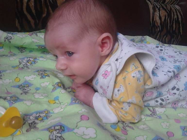 мужичок у нас худенький4500 и 57см.родтлся3650;55см. Хотя очень любит висеть на тите.Сёма очень улыбчивый, пытается агукать.ууукает мелодично)))певец наш)))психует бывает.темпераментный:-)держит по-маленьку головку,переворачивается с животика на бочок.любит папу!!с ним у них долгий диалог бывает:-)