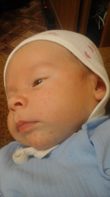 Вам мес всего? Похоже на норму, но если грудью кормите, не кушайте сладкое на всякий случай. Аллергия сыпь может долго держаться даже после исключения аллергена