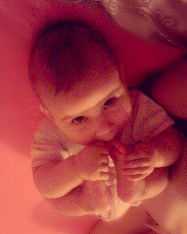 Упорно пытается сесть, что аж багровеет лицо от напряжения…может даже срыгнуть из за этого((( быстрей бы уже села!!! (но если ей придерживать ноги то она садится из положения лежа сразу, так же садится, когда цепляется за наши пальцы)
