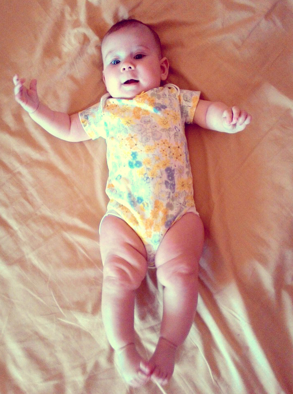 Спим снова всю ночь, правда сегодня она проснулась в три часа, перевернулась во сне на живот и начала ворчать.