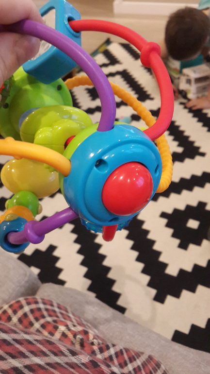 Эта игрушка навырост. Играть ею будет удобнее и интереснее, когда малыш уже будет более-менее сидеть. Она довольно большая и тяжелая: если зарядить такой по лбу - мало не покажется! Поэтому я выдаю ее Ульяне на поиграть в основном под своим присмотром. Но вроде прецедентов не было пока) Игрушка интересная, там все звенит, пищит, двигается. Думаю, играть ею мы будем долго)
