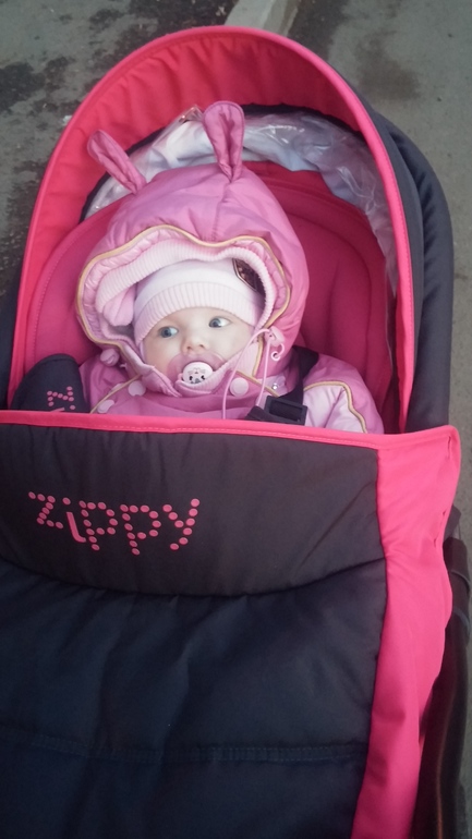 Чуть не забыла, три дня назад пересели в прогулку, так как Софьи стало не в моготу валяться как маленькой в коробе. Теперь почти всю полуторачасовую прогулку глазеет по сторонам