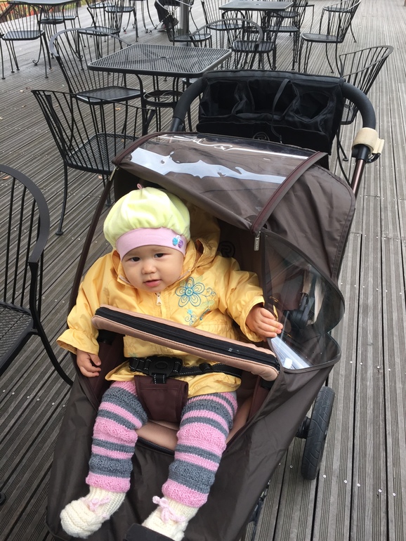 Обуваю в ботиночки. Но у нас ветер, носочки не спасут