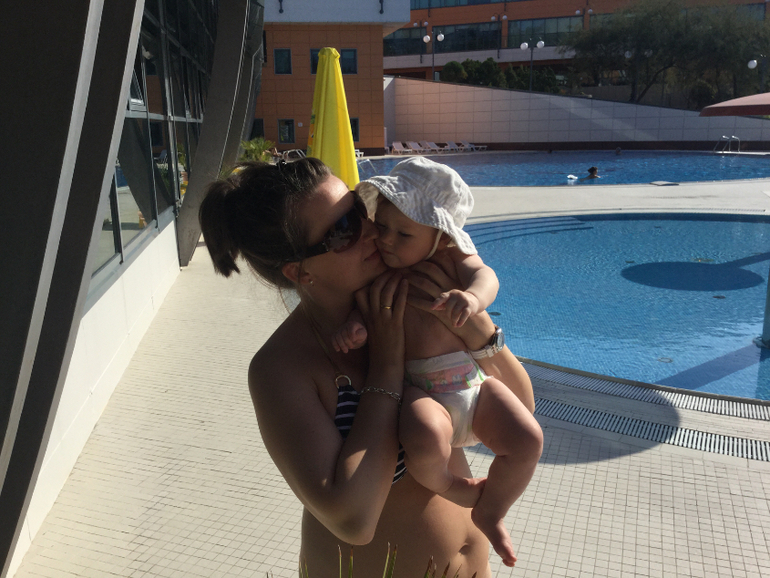 Прилетели мы в Сочи 16 окт ( полет прошел оч неплохо, на взлете малышку вырубило, ТК рейс был рано утром и мы ее разбудили в 5 часов утра..в такси к аэропорту заснула ненадолго, в аэропорту, с этими проверками -досмотрами-не поспать и как только сели таки на свое место в самолет, моя дочка как под певшее сливчное масло растеклась во сне у меня на руках))) ура!! Взлет мы проспали)) а вот на посадке повезло меньше, Полли кричала уууфффф, ни сися в рот, ни бутылочка с водой-вообще ни соски ни бутылочки не даю, взяла на экстренный случай, Ничего не действовало!! Как сели-аллилуйя-малышка успокоилась... Погода была мягкотеплая, солнечно, добрались до гостиничного комплекса, в такси ее опять на удивление вырубило) разместились... Номер с видом на море, тишина, покой, солнце и так дней10... 27 окт у нее стал лезть верхний зубик, третий уже по счету) ну тут капризики и плохое настроение, немного бессонных ночей, и через пару дней опять все стало норм) и вот вчера мы вернулись) подзагоревший и отдохнувшие!! Первый отпуск втроем, в крошкины 6месяцев закончился, но мы знаем-лучшее конечно впереди!!