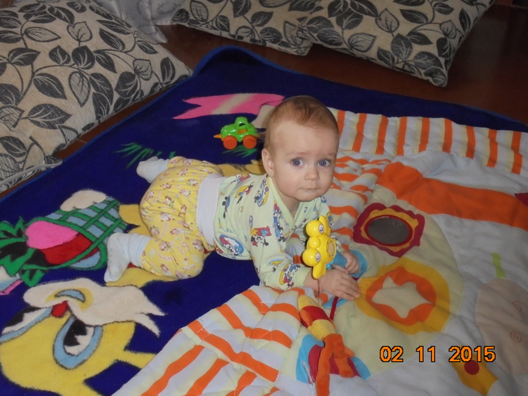 ЗнакомимсяВсем привет. Сегодня нам исполнилось 7 месяцев. Давно не писала. В 6 месяцев что то настроения не было пост писать. Читаю всех, а писать не пишу. Наш вес 7700, рост 73 см. Что мы умеем: мы умеем ползать, буквально вчера начал вставать на ножки, мотается еще как мотылек, но ничего научимся. Пока не сидим. Лепечем разные звуки, причем очень громко. Немножко ставлю в ходунки, но он не ходит, просто стоит. Минут на 10-15, чтобы ему поесть приготовить или сбегать в туалет.