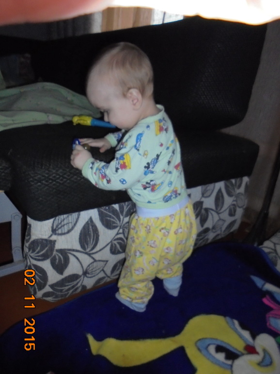 Спим ночью не особо хорошо. За день много всего происходит и поэтому сон беспокойный. Этой ночью вставал без конца и полз куда то. Пришлось опять применить пеленку, чтобы его угомонить.