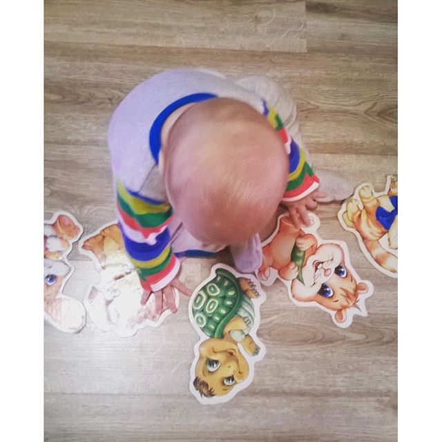 Это любимые карточки Эльвируськи. Они не убиваемые!!!! Читаю стишки про домашних животных, показываю карточку с этим животным, считаем их, зверята прячутся и появляются под радостный хохот сына!!! Позже будут части тела)))