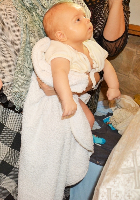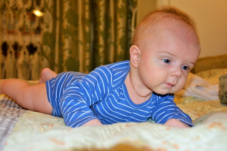 Богдаша хорошо держит головку,лежа на животе уверенно рассматривает все вокруг.Видя нас улыбается во весь свой беззубый рот.Очень смешливый.Любит когда с ним разговаривают, пытается на своем детском нам выдать что-нибудь!Агукает,гулит,пускает пузыри.Любит прижаться ко мне,и долго долго так сидеть на ручках.Не любит лежать ,обязательно надо или на ручках все показывать ,либо в автокресле-люльке,либо в качельках,тогда он доволен.Он полностью на ГВ.Правда в этом месяце уже прибавил меньше.Едим по требованию,насильно не пихаю.Бывают моменты что весь искрутиться возле груди пищит,берет ,бросает грудь,а потом вроде все хорошо.Не могу понять почему так.Последнюю неделю спим по ночам,кушать не просим,но как такового нет определенного графика.У врача будем наверно на следующей неделе.По нашим весам вес 6600 по одежде рост60-62 см.31 августа наконец-то мы его покрестили!Крещение прошло замечательно,Богдан улыбался,болтал с батюшкой или просто наблюдал.Ни разу не заплакал!!!!