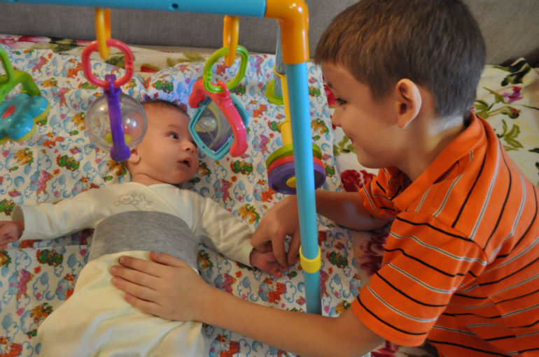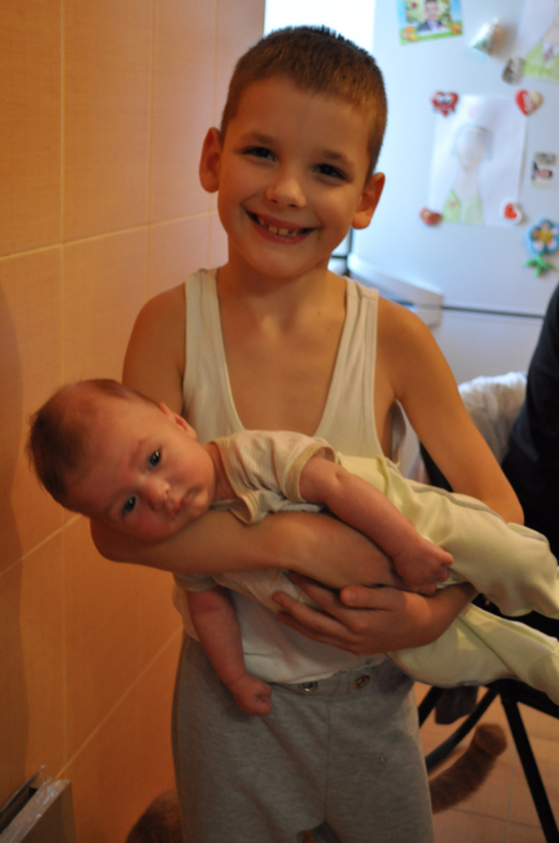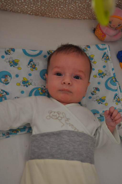 ХвастаемсяБыло 3 дня назад) Растет мой зайчик не по дням, а по часам. Наел за месяц 1,5 кг, сейчас 4800 (родился 3080), вырос на 4 см- 55см (родился 51). Уже полностью на ИВ, ест Нутрилон комфорт, иногда его же обычную единичку. Мне говорили, что комфорт дети плохо едят, т.к. он не вкусный (пробовала, согласна), но мой ест с завидным аппетитом) Врач смеется, что наголодался в первые три недели, теперь ест, что дают) Агукает пречудесно и с удовольствием, заслушаться можно. Улыбаться начал гораздо чаще, а то я уже переживала, чего он такой серьезный. Колики немного отступили, но не знаю, от Комфорта или от возраста, пока смесь не меняю. Голову вертикально держит, с пуза очень плохо. За погремушкой следит не очень цепко, но по настроению с игровым центром может и час пролежать, так же и с мобилем. К неврологу съездили, есть некоторые замечания, назначила Цераксон по 0,5мл*2р/день. Опять таки, говорила, если выплевывать будет- водой разводить, но не приходится, он все облизывает и еще ищет)) К ортопеду ездили, тазобедренные смотрели (немного туговаты вроде), сказала, что ортопедически абсолютно здоровый ребенок))) Сделали наконец-то БЦЖ (22.10), пока никакой реакции. Что еще? Режима, как такового, еще нет, все очень приблизительно. Четче всего ночной сон- ложится в 9-10 вечера (в своей кровати), встает в 6-8 утра (в нашей кровати), за ночь ест пару раз. Под катом много фото для истории)