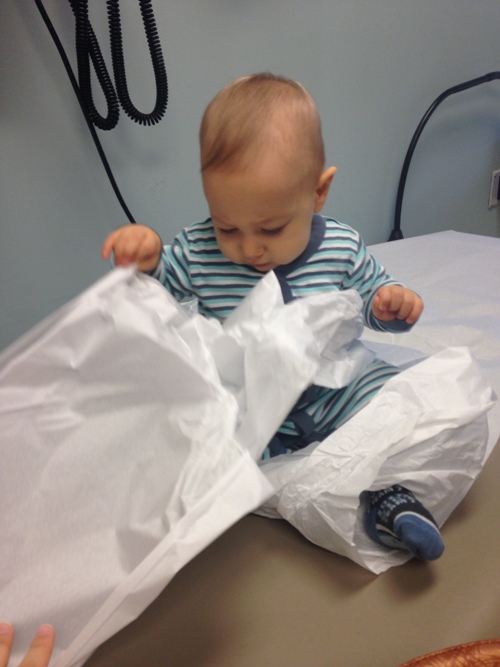 А вот фотка вчерашняя. На приеме у доктора были. Подписывали бумаги на канадский паспорт. Так пока доктор подписывала, мой мафиозо итальяно заинтересовался бумагой, которую стелят на кушетку. Разглядел, откуда она берет начало и отмотал полрулона)))) Я хотела забрать его, а доктор мне сказала:"Оставь, пусть мотает!" Ну, я и зафотала сей момент)))