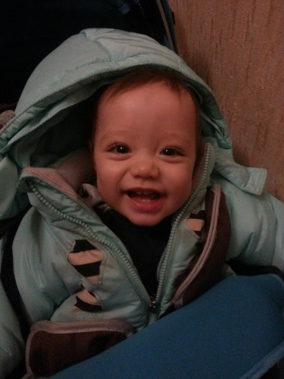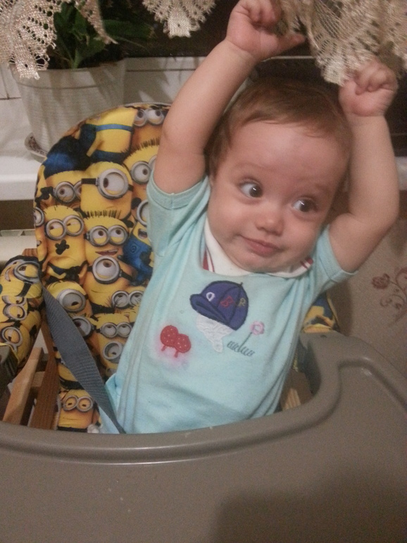 Умелок в физическом плане у нас особо не прибавилось, зато старыми владеет уже очень уверенно. Ходить пока нет особого желания, может пройтись немного вдоль стены, потом дотянуться до стула и придерживаясь подойти к нему или к ногам взрослого, но только сам! Если начинают водить за ручки, вырывается, садится. Гораздо больше ему нравится носиться ползком или стоять. Без поддержки стоит где-то секунды 3, потом замечает, что его не держат, и аккуратно присаживается, осторожничает:)