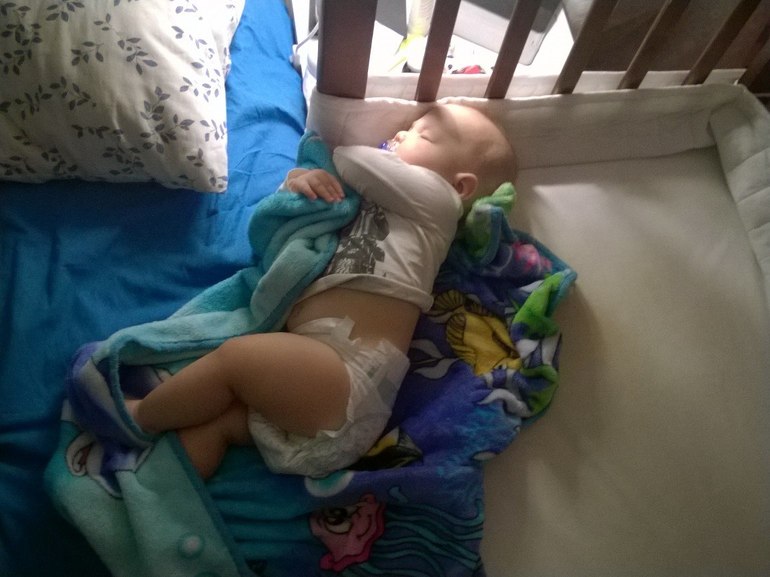 В остальное время спит терпимо. Но малявка наглеет, стал перекатываться ко мне со своей кровати. И пихается прям, пихается.