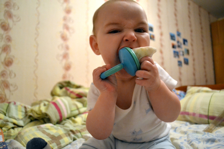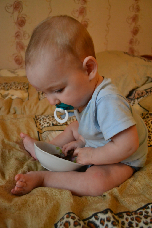 Прикорм: ест уже всевозможные фрукты и овощи, но в лучшем случае грамм 150. Мясо ввела две недели назад, вроде бы парень оценил. Творог с фруктами вообще готов есть бесконечно, но даю только вечером и через день. Фрукты периодически обсмактывает в ниблере, все попытки дать яблоко/банан просто так, закончились откусывание огромных кусков и поперхиванием.