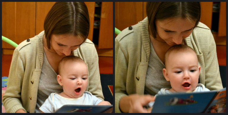 И ещё усердно машет головой "нет-нет" и "да-да". Я проговариваю в этом время, чтобы сразу запоминал)