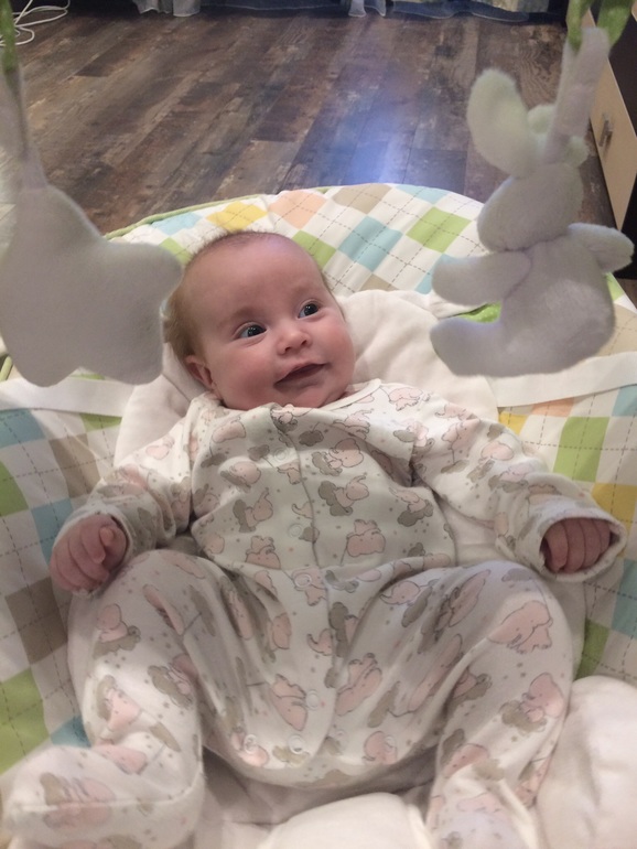 Дочка очень быстро из отекшего маленького кулька, который только ел и какал, превращается в активного эмоционального ребенка! В вертикальном положении уже довольно уверенно голову держим, из положения лежа на животе нам не нравится еще ее поднимать) держит меньше и психует при этом) Купаемся мы с кругом, правда ванна у нас небольшая и туда-сюда плавать ей становится скучно через минут 15.. Спим иногда с 12 ночи до 6 утра, а иногда просыпаемся в 3-4 ночи. Пеленание нам не нравится, но на ночь руки все равно фиксирую, иначе мы долго не проспим.. Лучше пусть в процессе сна сама их вытащит, чем сразу же себя начнет колотить ими. 😬 Волосики растут, скоро будем косы плести)) Гулит немного, улыбается, за игрушками пока не тянем руки, но разговариваем с ними (еще с входной дверью бывают переговоры и с пеленками) 😅 Пытаюсь приучить хотябы иногдп сидеть в качелях, а то ручной ребенок у нас растет.. Пока хватает нас на полчаса в среднем, потом уже начинает недовольно покрикивать, типа чего ты тут ходишь мимо, а меня не берешь?! 😐 Из плохого - вылез дерматит какой-то на коленках и доктях 😳 Грешу на собаку, но очень не хочется, чтобы это было изза нее.. Нам щенка хаски подарили недели 3 назад, как раз появление аллергии совпадает с этим событием 😓 Пока исключим другие варианты, на крайний случай уж попробуем собаку на неделю отдать свекрови.. Вот такие новости!