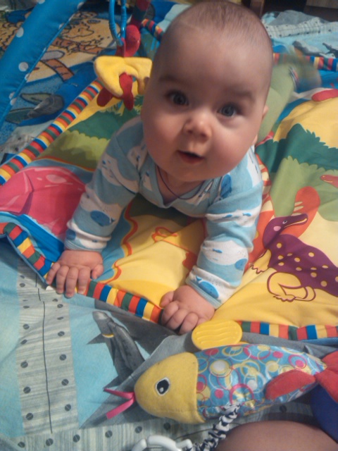 Физическое развитиеВсем привет.вот и нашему Макарию скоро 8!время остановись!очень быстро оно летит!из наших умелок:наконец начали ворочаться,при чем сначала с живота на спину,потом со спины на живот.стал сидеть,правда пока не сам,а когда посадиш,но уже с прямой спинкой и уверено.очень любит стоять!сам не встает,но из положения сидя тянется за ручки и стоять ему подавай!!!)))))учу ползать его,но орет !так что мы вот такие"медленные".ну ничего даст Бог все догоним.а и самое печально свои 8мы встречаем в больнице у нас пневмания((((колют моего зайку уколами(((