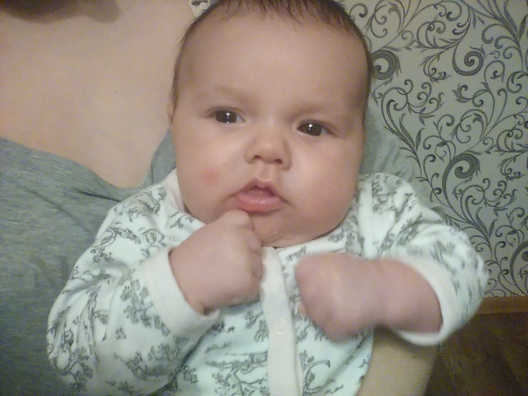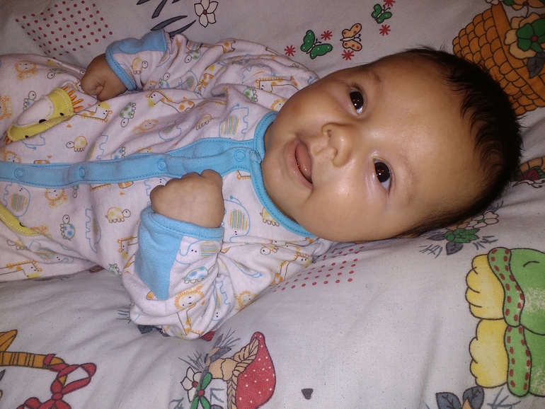 Сынулик уже как взрослый)голову вертит,как хочет.Лежа на животике уверенно и хорошо все рассматривает.Еще лежа на спине ,когда оставляю в кроватке голопопить, крутится-вертится почти на 90 градусов,прихожу,он уже перекрутился)).Когда,видимо,надоело лежать-он напрягает пресс и отрывает голову-подниматься пытается.Гуляет дома на ручках в основном,любит все рассматривать,когда подбрасываю-смеяться начинает.Очень нравится,когда массирую пяточки,глажу ножки-улыбка до ушей!!Хорошо опирается на ножки,когда беру его под ручки и он "типа прыгает"тоже улыбается во всю).Агукает во всю))болтает громко и с визгами!
