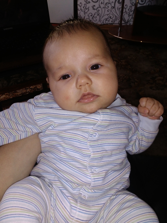 Любит за Севой наблюдать,даже говорил ему что-то))братаны-понимают друг друга.Севка то за ручку,то за ножку пощупает,то целоваться лезет,то обниматься,в общем не обделяет брата своим внимаем!!Волосики выкатываются-они сейчас везде и светлее становится Ярослав.