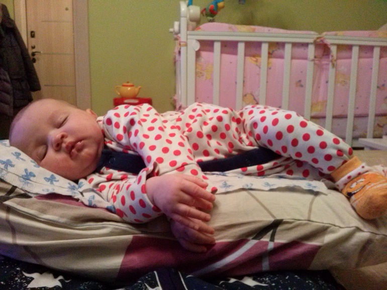 Уже вертится как юла вокруг своей оси.ночью встаю кормить,а марго спит вверх ногами,голову хорошо держит,агукает недель с 3 и улыбается,но еще не хохочет,наверн будет серьезная,вика с 2мес хохотала.
