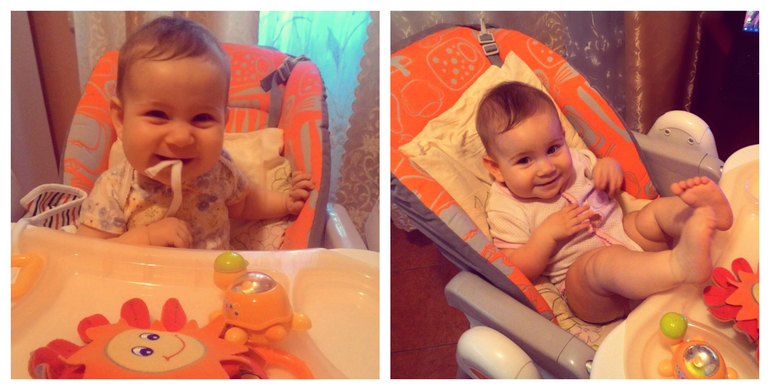 Она очень активная, я стала уставать от ее шилопопства, на одном месте не сидит долго, и надо везде все ручками трогать, ложки все отобрать и у нас с мужем, шторы тоже обязательно надо потрогать. Очень любознательная, веселая и хитрая девчуля)