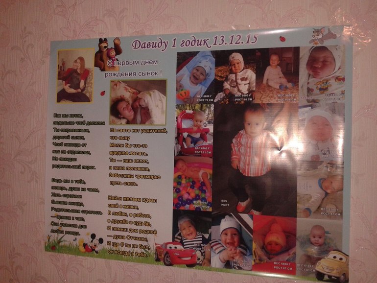 Уже годик. Наши выпускникиЗахотелось и мне рассказать про наш праздник... В начале планировалось празднование в ресторане... Купила себе безумно дорогушие платье, туфли...а потом пришлось все отменять так как наш крестный застрял по работе в другой стране... Ну и ладно... Это наверное даже к лучшему... (Жаль платье и туфель... Они пылятся в шкафу) А дело было так : подготовка началась за 2 недели! Заказала банер с фотоколажом, и по тихоньку делала единичку из картона.... Ночь перед самим праздником мы с мужем сделали стоики из шаров, и надули ещё для игр шарики. Утром когда сын проснулся его ждали шарики на полу и его подарок посередине! Когда он все ето увидел то просто завижял от радости)))) так приятно было за ним наблюдать! К 2 часам позвали самых близких родствеников и друзей.... В общей сложности человек 20... Ух как я устала готовить на всех.... За 3 дня подготовки для еды начала... Давид был в хорошем настроении весь день! И количество людей его совсем не смущало! Все близкие, знакомые! Ко всем шёл играть с радостью! Часам к четырём он лёг спать! Прям по расписанию!!! И ему было обсалютно всеравно на шум)))) а через полтора часа он проснулся и одаривал всех улыбками) деток на нашем празднике было 4 и боже как я рада была что комнат у нас три! Две комнаты мы оборудовали для мамочек и деток! На смену подгузов, на покушать, спать и поиграть))) все было мирно и тихо.... Да хлопотно в плане пойди, подай... Я даже забыла сфотографироватся с мужем и сыном.... На всех фото мы по отдельности.... Жаль.... Давид получил просто огромную кучу подарков! А к восьми вечера все разошлись! К девяти я уже убралась, по мыла посуду и забыла что час назад от гостей некуда наступить было))) торт Давид первый по пробовал! Сам! Прям укусил с угла) так мило))) а банер я ему подарю на свадьбу))) вот так вот.... Даже не верится что у меня уже годовалый сын! Капризули уже взрослые показывает!))) муж меня с утра поздравил букетом красивых цветов в корзинке... Так мило! А весь день помогал просто нереально! А вечером украдкой пока никто не видел целовал и обнимал.... Чувствовала себя самой любимой женой и мамой! Я просто безума от своих мужчин!