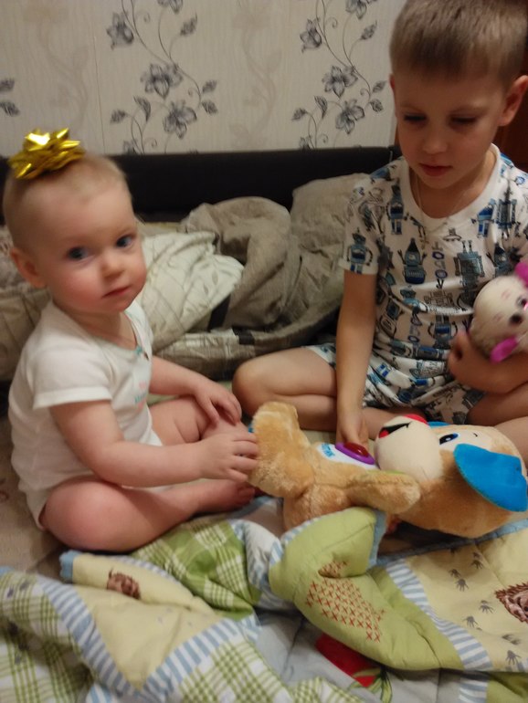 В подарок Даша получила учёного щенка Фишер Прайс,и осталась довольна,а я то как довольна,что угодили))) сына тоже от него не оторвать)))