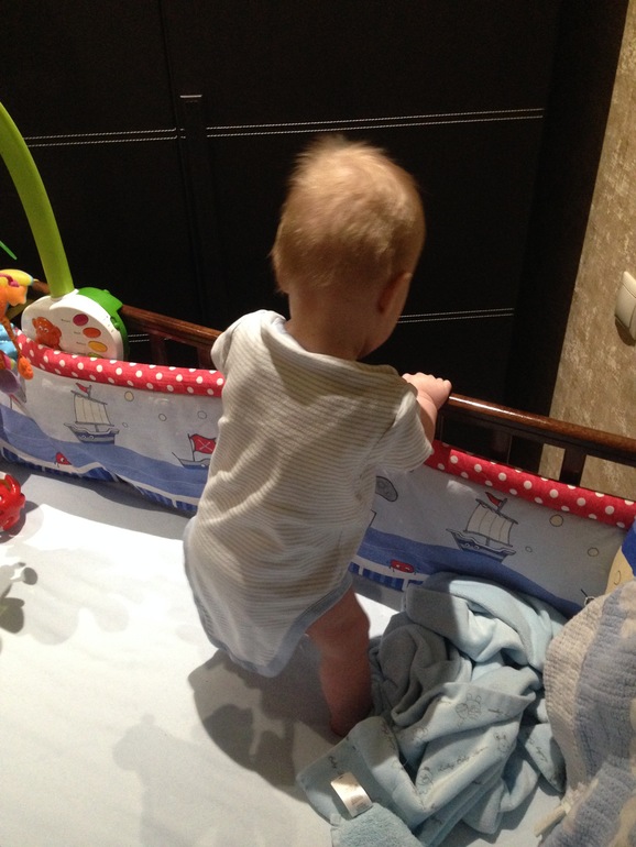 Дорогая, опусти кроватку!!!!!!!!!!! вставать скоро он начнет постоянно и еще и прыгать! буквально неделя-две!!!!