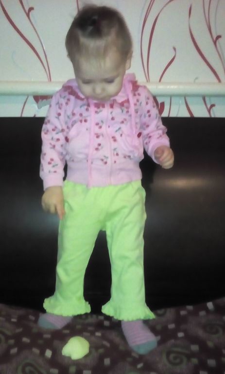 ну а это мы дома...уронила яблоко и как бы она поступила 2 недели назад??? отвечу села б и взяла, а тут она стоит и тычет пальцем показывая что упало оно и надо ей дать......у нас совсем изменился ребенок , скорее б она вошла в нормальный жизненный ритм