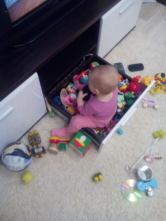 Тут 50/50 игрушки брата, не пугайтесь) и это 1/5 от всех. Рядом заваленная лоджия. Сколько восторга, когда мы туда её впускаем играть