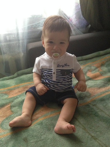 Особых умелок в этом месяце не появилось. Единственное, Влад уже пытается ходить без опоры. Шаг-два и падает на попу. На диване поувереннее, на полу боится пока отпускать руки.