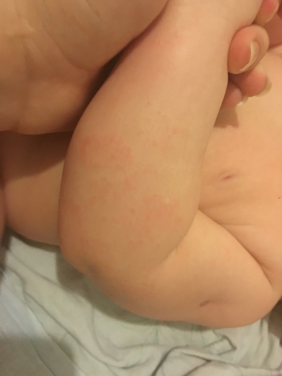 после кучи тучной перепробованного всего, знакомая посоветовала мазать серной мазью раз в 2 дня и о чудо видно было улучшение, так же фенистил пили и мазали и крема всевозможные и бубушкины средства и ничего особо толку не давало. После ванны вообще краснело очень. Мазала где то раз 6 мазью серной, потом чуть стрептоцидовой и потом уже просто шершавость убирала детским кремом, это единственное, что нам помогло, хотя как - бы серная мазь не от этого совсем конечно, так что сама руками развожу почему так.