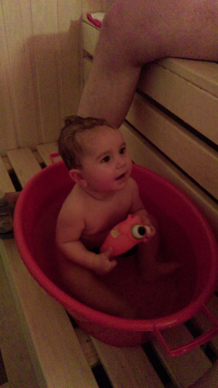 Бассейн и водные процедурыВот и сходила моя доченька первый раз в баньку! Довольная была...уснула богатырским сном!