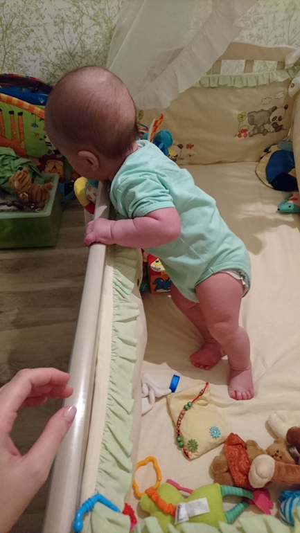 Физическое развитиеСейчас нам 6 и неделя, дня 3 назад Савеля начал вставать в кроватке. Всегда так неожиданно, когда он осваивает что-то новое, совсем недавно удивлялась, видя его макушку, когда он сидел в кроватке:) и вот, стоим)) Очень боюсь оставлять одного, даже в кроватке, все время куда-то рвется, встаёт и бъется головой. Да и боюсь, что может вывалиться. Так что теперь или на руках, или стульчик, или слинг.