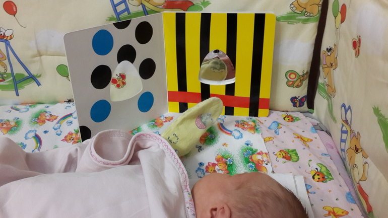 Там что то типо кривого зеркала) ребенка же в обычное нельзя смотреть, а в такое можно