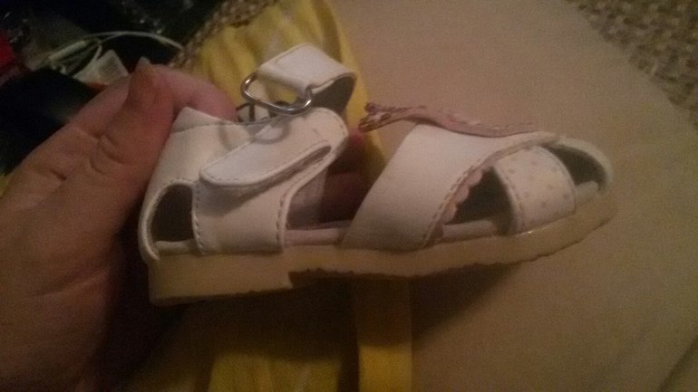 сегодня я решилась купить ей сандалики для дома, с супинатором, задником, регулируемыми хлястиками, мягкие...долго выбирала, нашла нужное и купила. Но только я попыталась надеть их на ногу крохе, она скривилась, а потом когда поставила ее на пол раздался рев, она начала сдирать их с ног, вся покраснела, слезы с кулак, что-то причитает...пришлось снять. до этого проверила, что нигде ничего не пережимат. повторить попытку не удалось, как только она увидела, что я беру в руки сандали-реветь.
