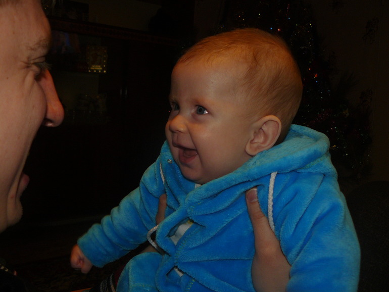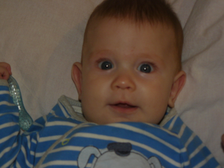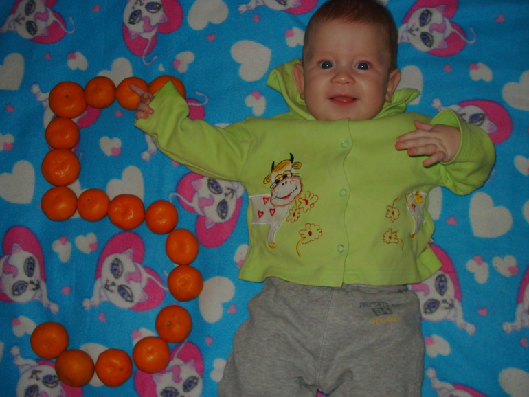 Вот и нам исполнилось 5 месяцев, боже, как же быстро время летит, я не верю... точнее верю, но в голове не укладывается, что с рождения сына прошло уже 5 месяцев, мне кажется это было вчера! Весим уже 7500 и рост 68см. Уже вовсю переворачивается во все стороны. За день до 5 месяцев он сел...) Теперь из положения полусидя сам садится и сидит секунды 2-3, больше не даю. Иногда немного помогает себе ручками... Но сидит)))Понемногу пытается ползать, похож на тюленьчика, такой смешнючий)))))Уже устойчиво стоит. И... у нас лезет зубик! Я даже и не ожидала, что так рано пойдут, у Дианки только к году пошли, а с Данькой у нас все быстро)Слава Богу без темпы, только вот постоянно руки во рту, и все мокрое... Смеемся в голос и подпеваем когда пою колыбельную, визжит и пищит.