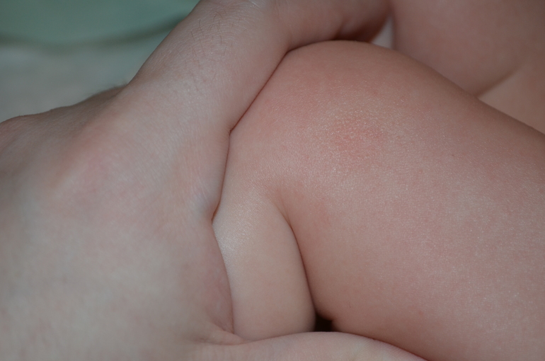 Уход за малышомЭти 2 пятнышка уже существуют некоторое время.Расположены сбоку от колена на обеих ножках. Я как-то пропустила когда они появились. Думала, что сын ползать пытается, вот и натер.. Они до сегодняшнего дня не видны были, просто наощупь шершавость какая то. А сегодня после купания заметила что они чуть более розовые, чем остальная кожа, да и передняя поверхность бедер какая то шершавая стала. Что это может быть? Выглядит оно вот так: