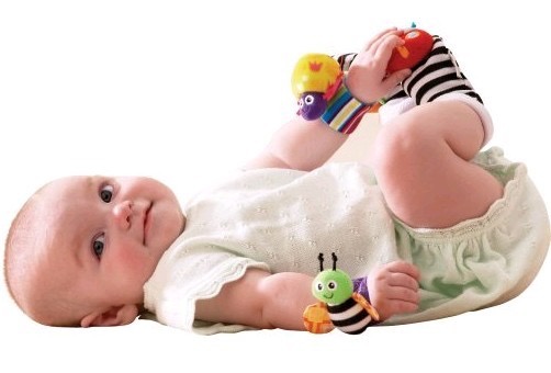 К определённому возрасту ребёнок начинает осознавать - сначала, что у него есть ручки, а потом, что и ножки, соответсвенно браслетики на руках и на ногах привлекают внимание ребёнка и он их пытается схватить и засунуть в рот, например. У нас был браслет с маленьким бубенчиком, младший постоянно наровил его снять или всю ногу вместе с браслетом в рот засунуть