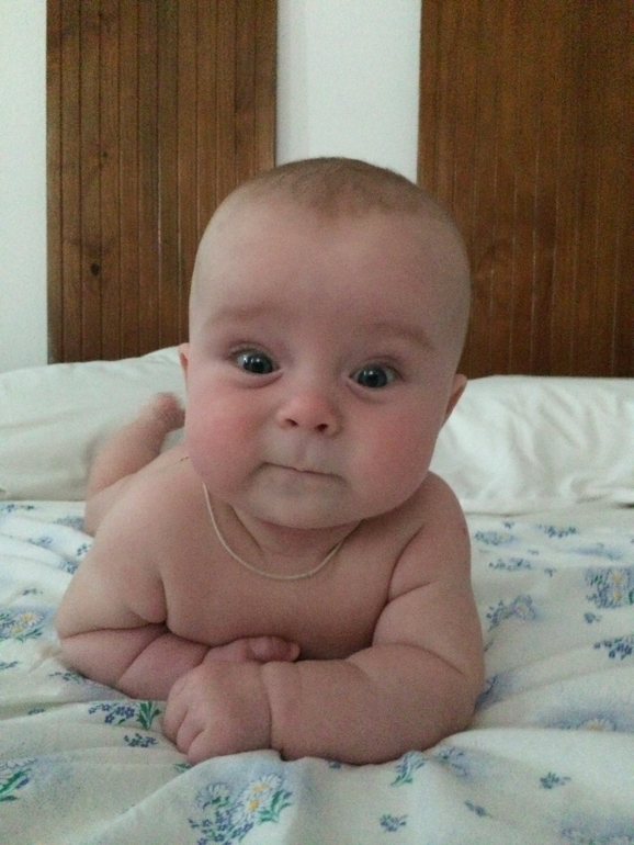 Темперамент у Федюни просто рай для ленивой мамы - покормили - полежал, хочет посмотреть-поднял голову вверх. Переворачивается редко, любит лежать на боку, иногда переворачивается на животик, возьмут на ручки - сидит и смотрит, что происходит вокруг