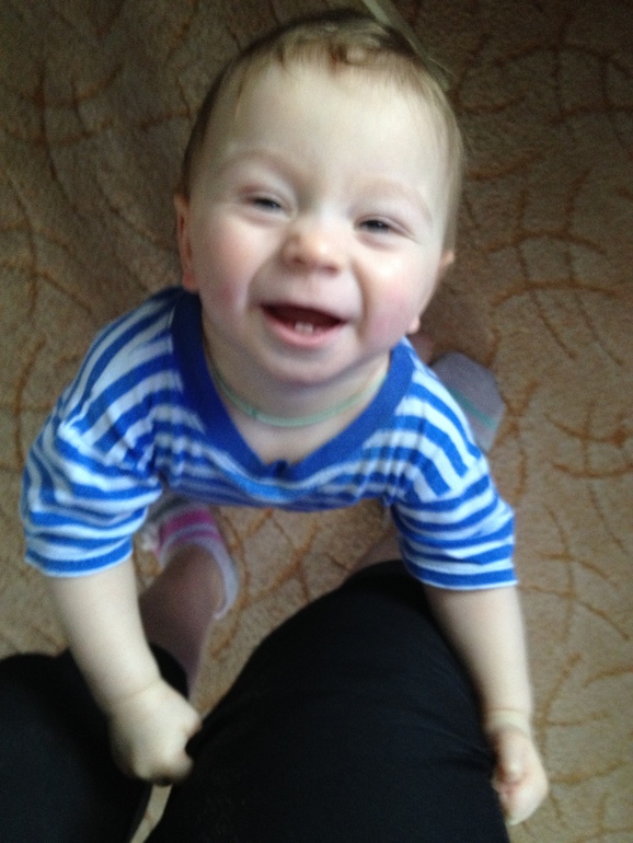 Утром как только просыпается все маленькие и большие дела в него делает. И так в течение всего дня, присаживаю и справляет нужду в горшочек . Прекрасно понимает, когда говорю давай на горшок . Сразу к нему стремиться. Любит очень книги , смотрим животных, а я голосом парадирую звуки какие они произносят. Показывает глазки у всех , говорю покажи язык- показывает. Любит играть в ку-ку. А ещё в догонялки по дому носимся . Стоит отпускает руки секунд 10. А так приставным шагом у кровати и везде, где ищет опору. Пытается залезть на диван, ногу задирает, но пока не получается.