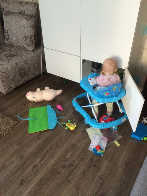 спускаешь ребенка на пол и можно еще спокойно подремать 30 мин, теперь все изменилось, утро начинается так...