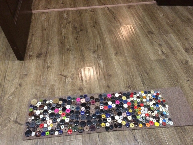 P/S похвастаюсь, помните, в 80-х в садик просили приносить пуговицы, для коврика, вот какой коврик сделала мама моя... ножками ходить ))
